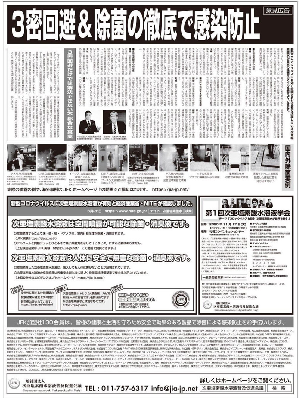 2020.10.15 発売の週刊文春にJFKの意見広告が掲載されました。